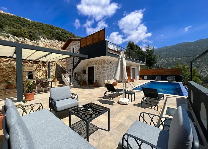 Located about a 10-minute ride from Kalkan Public Beach, the 2-bedroom Villa Safi comes with a seasonal outdoor swimming pool equipped with a sauna. Featuring a terrace, the property is situated about a 10-minute ride from Black & Gold.